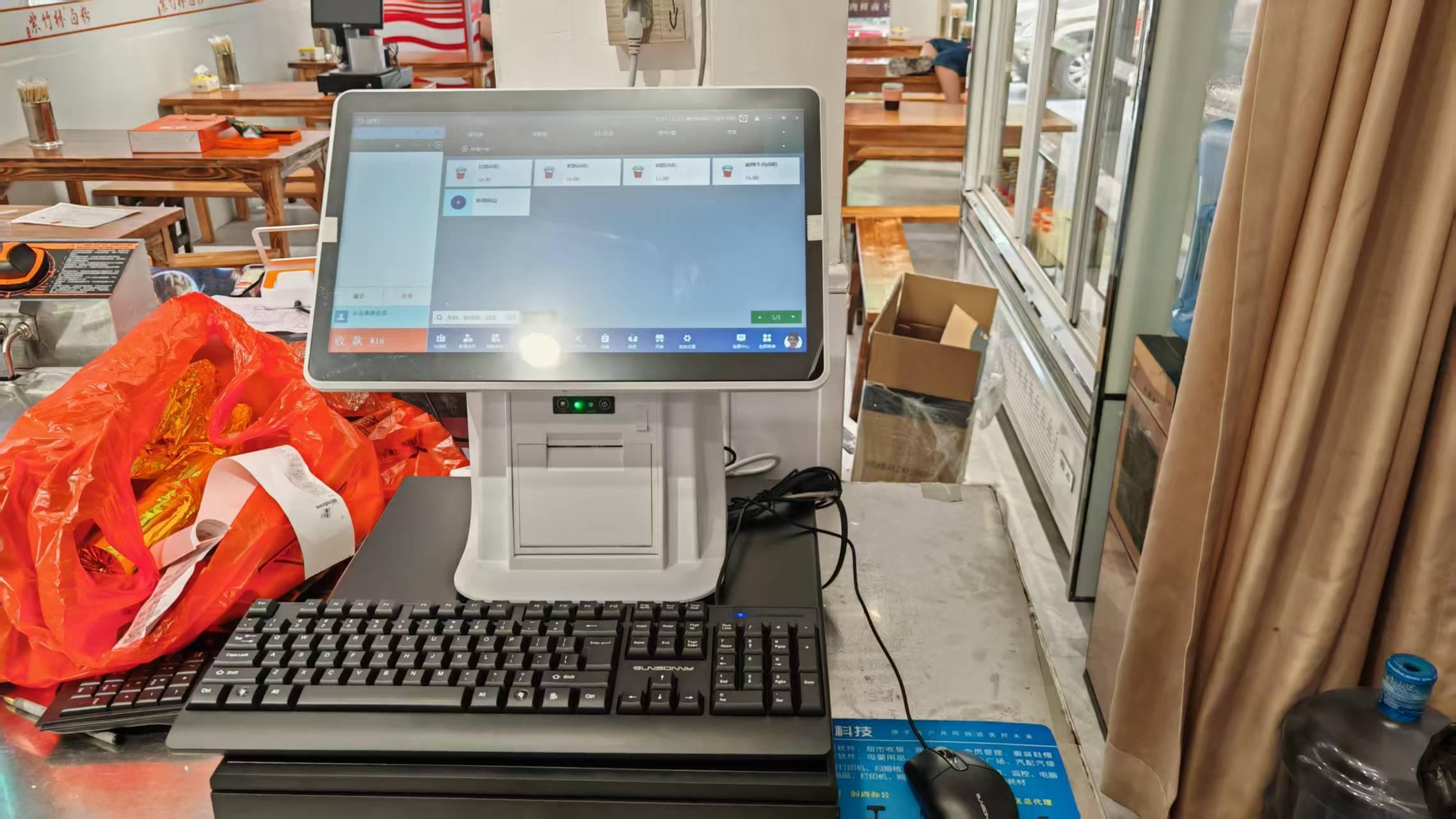 收銀設(shè)備采用觸屏收銀一體機(jī)搭配銀豹餐飲收銀系統(tǒng)解決方案,操作流程不卡頓,快餐早餐店首先
